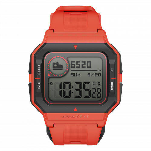 Amazfit Neo. Diagonal de la pantalla: 3,05 cm (1.2"), Tipo de visualizador: STN. Capacidad de batería: 160 mAh. Peso: 32 g. Humedad: resistente al agua hasta: 50 m, Material de la banda: Poliuretano, Color de banda: Naranja