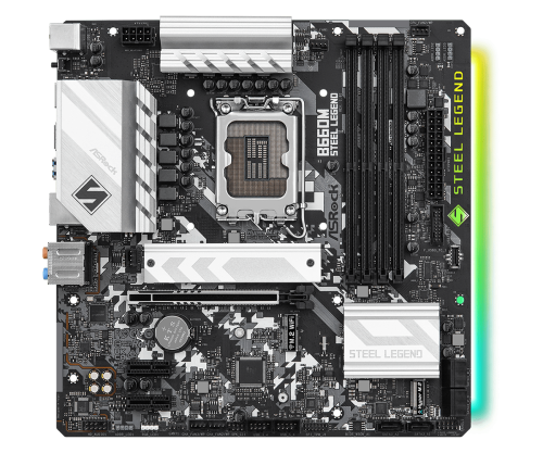 Asrock B660M Steel Legend. Fabricante de procesador: Intel, Socket de procesador: LGA 1700, Procesador compatible: Intel® Celeron®, Intel® Core™ i3, Intel Core i5, Intel Core i7, Intel Core i9, Intel® Pentium®