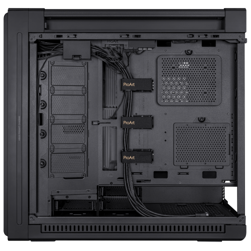 ASUS ProArt PA602. Factor de forma: Midi Tower, Tipo: PC, Color del producto: Negro. Ventiladores frontales instalados: 2x 200 mm, Diámetro de ventiladores frontales soportados: 200 mm, Ventiladores traseros instalados: 1x 140 mm. Tamaños de disco duro soportados: 2.5,3.5". Ancho: 245 mm, Profundidad: 593 mm, Altura: 560 mm. Ancho del paquete: 735 mm, Profundidad del paquete: 370 mm, Altura del paquete: 670 mm