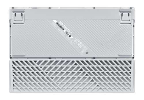 Teclado para juegos ROG Azoth X 75% personalizado con interruptores mecánicos ROG NX V2 intercambiables en caliente, teclas sublimadas y semitranslúcidas, cubierta superior de metal, montaje de junta, espuma amortiguadora de cinco capas, placa de posicionamiento FR4, PCB orientada al sur, conexión de tres modos con tecnología SpeedNova de 2,4 GHz, pantalla OLED, perilla de control de tres vías, reposamuñecas, tres ángulos de inclinación y compatibilidad con Mac