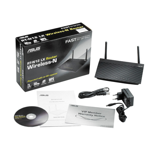 ASUS RT-N12LX. Estándar Wi-Fi: Wi-Fi 4 (802.11n), Tasa de transferencia de datos WLAN (máx.): 300 Mbit/s, Wi-Fi estándares: 802.11b,802.11g,Wi-Fi 4 (802.11n). Tipo de interfaz Ethernet LAN: Ethernet rápido, Estándares de red: IEEE 802.11b,IEEE 802.11g,IEEE 802.11n,IEEE 802.3,IEEE 802.3u, Ethernet LAN, velocidad de transferencia de datos: 10,100 Mbit/s. Algoritmos de seguridad soportados: 128-bit WEP,64-bit WEP,802.1x RADIUS,WPA,WPA-PSK,WPA2,WPA2-PSK,WPS. Protocolos de red compatibles: IPv4, PPPoE, MPPE, PPTP, L2TP. Color del producto: Negro, Indicadores LED: LAN, Poder, WAN, Si