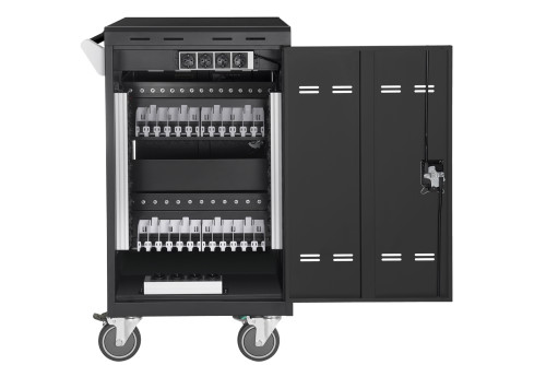 Maniobra con delicadeza .El diseño compacto del E24cPlus y sus ruedas de 5 pulgadas simplifican el transporte del equipo y garantizan una movilidad fluida incluso en pasillos abarrotados y en los espacios más reducidos.Gestión transparente de la alimentación y los cables. Los equipos se conectan fácilmente y se cargan por completo sin necesidad de configurar programas ni sobrecargar el circuito. Basta con enchufar el E24cPlus a la toma de corriente y se cargarán automáticamente todas las filas de unidades en un solo ciclo. Bueno para el bolsillo .La gestión de electrodomésticos de alta calidad no tiene por qué ser cara. El E24cPlus satisface todas sus necesidades de carga por una fracción del coste. Delgado y elegante .Espacio interior generoso para almacenar 24 aparatos y, sin embargo, gracias a su diseño delgado, cabe incluso en los espacios más reducidos. Ideal para espacios reducidos.