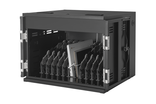 Armario de carga para 12 dispositivos (tabletas, portátiles y Chromebooks)Montar, apilar o guardar: el X12 permite cargar de forma segura hasta 12 dispositivos en un espacio de lo más reducido.Diseño versátil y compactoSu tamaño de tan solo 24,2” deja más espacio al aprendizaje interactivo, al tiempo que admite 12 portátiles, Chromebooks o tabletas de hasta 15”.Gestión de cables fácil y accesibleEl X12 ofrece un sistema de gestión de cables avanzado y patentado para que los cables no sean un estorbo. El panel superior extraíble ofrece una amplia capacidad de almacenamiento para albergar adaptadores de todas las formas y tamaños.Tamaño reducidoGestione y guarde portátiles, Chromebooks y tabletas de hasta 15” sin preocuparse por el espacio de su aula. Coloque el X12 encima de una mesa o móntelo en la pared para cargar los dispositivos.Dispositivos de varios tiposPersonalice el X12 con sus divisores de ranuras ajustables. Gracias a su capacidad para gestionar y guardar distintos tipos de dispositivos, es idóneo para cualquier entorno de aprendizaje.Montar. Apilar. Guardar.El X12 puede colocarse encima de una mesa o montarse en la pared. Maximice el espacio del aula apilando los armarios para cargar un mayor número de dispositivos simultáneamente.Servicio y garantía inigualablesEl X12 incluye el programa de servicio y garantía líder en el sector de AVer, con soporte técnico y reparación in situ, junto al programa de garantía de 10 años para componentes mecánicos y de 5 años para componentes eléctricos.