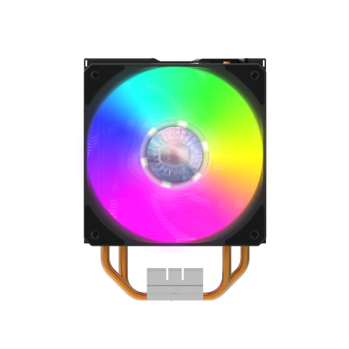 Cooler Master Hyper 212 LED Turbo ARGB. Tipo: Enfriador, Diámetro de ventilador: 12 cm, Velocidad de rotación (mín.): 650 RPM, Velocidad de rotación (máx.): 1800 RPM, Nivel de ruido (baja velocidad): 8 dB, Nivel de ruido (alta velocidad): 27 dB, Máximo flujo de aire: 62 cfm, Presión máxima de aire: 2,5 mmH2O. Ancho: 120 mm, Profundidad: 120 mm, Altura: 25 mm. Color del producto: Negro, Plata