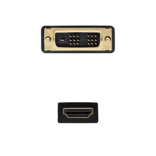– Cable DVI a HDMI con conector tipo DVI 18+1 macho en un extremo y HDMI tipo A macho en el otro- Conector HDMI de alta calidad blindado en oro de 24K.- Múltiple apantallamiento formado por 128 hilos trenzados y lámina de aluminio para la máxima reducción de posibles interferencias. Fabricado con conductores de cobre (cobre OFC-Oxygen Free Copper- 99,99%) de alta calidad que garantiza la máxima calidad de transmisión.- Velocidades de transferencias de datos de hasta 5,1 Gb/s – Soporta resolución de hasta Full-HD 1080p