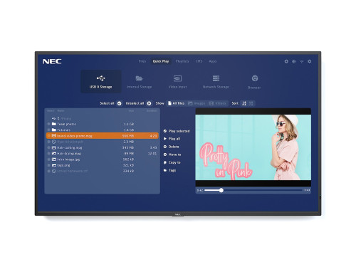 NEC MultiSync MA491-MPi4. Diseño de producto: Pantalla plana para señalización digital. Diagonal de la pantalla: 124,5 cm (49″), Tecnología de visualización: LCD, Resolución de la pantalla: 3840 x 2160 Pixeles, Brillo de pantalla: 500 cd / m², Tipo HD: 4K Ultra HD. Horas de funcionamiento (horas/días): 24/7. Color del producto: Negro