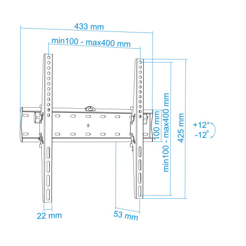 – Soporte inclinable para monitor/TV LCD, Plasma y LEDn- VESA máximo: 400 x 400 mmn- Pantallas soportadas: 32” ~55”n- Carga máxima: 40kgn- Inclinación: entre -12º y +12ºn- Distancia a la pared: 53mmnnCaracterísticas y EstándaresnSoporte ultra compacto que le permite fijar su monitor/TV LCD, Plasma y LED de 32” a 55” pulgadas a una distancia de la pared de 53mm. Realizado con materiales de alta calidad soporta hasta un máximo de 40kg. de peso.nCompatible con los estándares VESA de fijación (maximo 400 x 400 mm)nnFácil y Rápido.nIncluye manual de instrucciones y kit de montaje para que en unos minutos pueda disfrutar de su TV o monitor en el lugar elegido.nnSu Elección.nCon 10 años de garantía y fabricado en metal de alta resistencia está disponible en negro metalizado. Siempre con la calidad de los productos Tooq y al mejor precio.