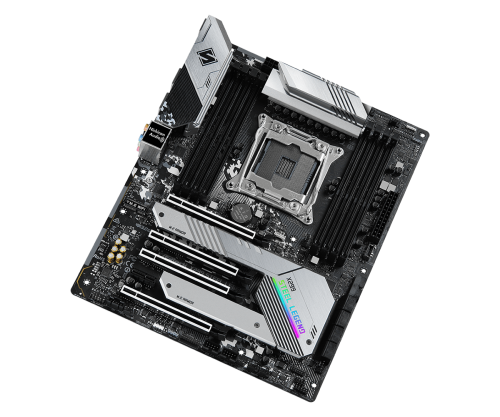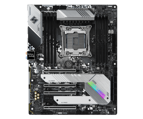 Asrock X299 Steel Legend. Fabricante de procesador: Intel, Socket de procesador: LGA 2066 (Socket R4), Procesador compatible: Intel® Core™ serie X. tipos de memoria compatibles: DDR4-SDRAM, Memoria interna máxima: 256 GB, Tipo de ranuras de memoria: DIMM. Interfaces de disco de almacenamiento soportados: SATA III, Niveles RAID: 0, 1, 5, 10. Soporte para proceso paralelo: 3-Way CrossFireX, 3-Way SLI, CrossFireX, NVLink, SLI. Tipo de interfaz ethernet: Gigabit Ethernet, Controlador LAN: Intel® I211-AT, Intel® I219-V