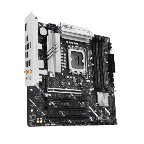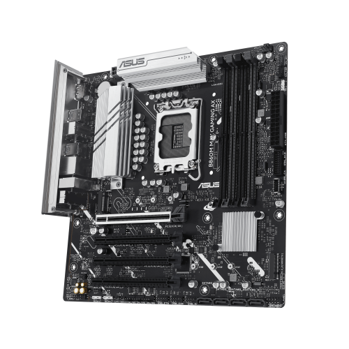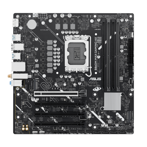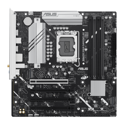 ASUS B860M MAX GAMING AX. Fabricante de procesador: Intel, Socket de procesador: LGA 1851 (Socket V1), Procesador compatible: Intel Core Ultra (Series 2). tipos de memoria compatibles: DDR5-SDRAM, Memoria interna máxima: 256 GB, Tipo de ranuras de memoria: DIMM. Interfaces de disco de almacenamiento soportados: PCI Express 4.0, PCI Express 5.0, Tipos de unidades de almacenamiento admitidas: HDD & SSD, Niveles RAID: 0, 1, 5, 10. Máxima resolución: 3840 x 2160 Pixeles. Tipo de interfaz ethernet: 2.5 Gigabit Ethernet, Estándar Wi-Fi: Wi-Fi 6 (802.11ax), Wi-Fi estándares: Wi-Fi 6 (802.11ax)