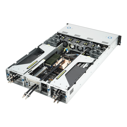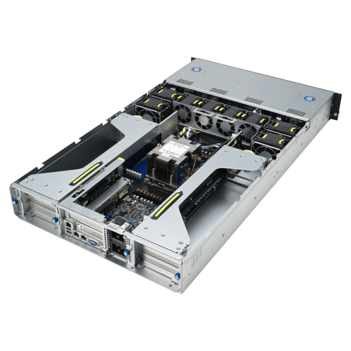 ASUS ESC4000A-E12. Socket de procesador: Socket SP5, Caché máxima: 1150 MB, Procesador compatible: AMD EPYC 9004. tipos de memoria compatibles: DDR5-SDRAM, Capacidades de módulo DIMM soportadas: 256GB, 16GB, 32GB, 64GB, 128GB, Memoria interna máxima: 3 TB. Tamaños de almacenamiento en disco soportados: 2.5,3.5″, Tipos de unidades de almacenamiento admitidas: HDD & SSD, Interfaces de disco de almacenamiento soportados: SATA, Serial Attached SCSI (SAS). Tipo de interfaz ethernet: Gigabit Ethernet, Ethernet LAN, velocidad de transferencia de datos: 10,100,1000 Mbit/s, Controlador LAN: Intel® I350. Tipo de chasis: Bastidor (2U), Color del producto: Plata