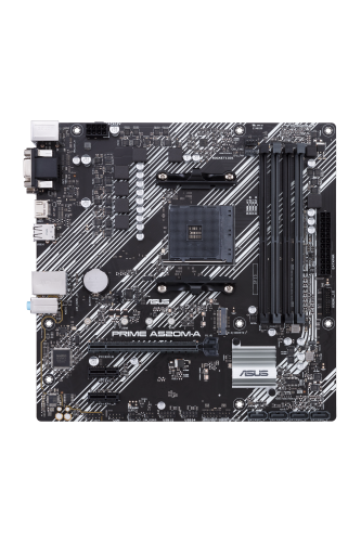 ASUS PRIME A520M-A II/CSM. Fabricante de procesador: AMD, Socket de procesador: Zócalo AM4, Procesador compatible: AMD Ryzen™ 3, AMD Ryzen™ 5. tipos de memoria compatibles: DDR4-SDRAM, Memoria interna máxima: 128 GB, Tipo de ranuras de memoria: DIMM. Interfaces de disco de almacenamiento soportados: M.2, SATA III, Tipos de unidades de almacenamiento admitidas: HDD & SSD, Niveles RAID: 0, 1, 10. Conector USB: USB tipo A. Tipo de interfaz ethernet: Gigabit Ethernet