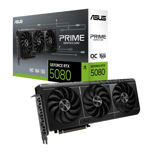 ASUS Prime -RTX5080-O16G. Familia de procesadores de gráficos: NVIDIA, Procesador gráfico: GeForce RTX 5080. Capacidad memoria de adaptador gráfico: 16 GB, Tipo de memoria de adaptador gráfico: GDDR7, Ancho de datos: 256 bit. Máxima resolución: 7680 x 4320 Pixeles. Versión OpenGL: 4.6. Tipo de interfaz: PCI Express 5.0. Tipo de enfriamiento: Activo, Número de ventiladores: 3 Ventilador(es)