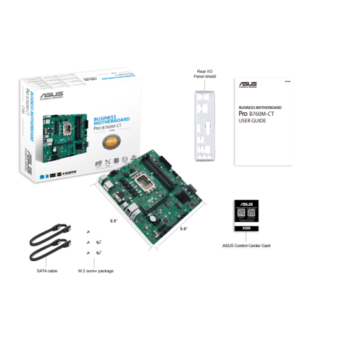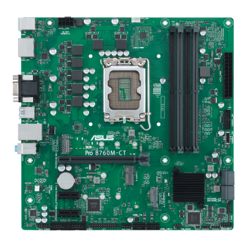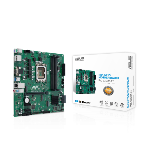 ASUS PRO B760M-CT-CSM. Fabricante de procesador: Intel, Socket de procesador: LGA 1700, Procesador compatible: Intel® Celeron®, Intel® Pentium® Gold, Intel® Core™ i3, Intel® Core™ i5, Intel® Core™…. tipos de memoria compatibles: DDR5-SDRAM, Memoria interna máxima: 128 GB, Tipo de ranuras de memoria: DIMM. Interfaces de disco de almacenamiento soportados: M.2, SATA III, Tipos de unidades de almacenamiento admitidas: HDD & SSD. Tipo de interfaz ethernet: Gigabit Ethernet. Componente para: PC, Factor de forma: micro ATX, Familia del chipset: Intel