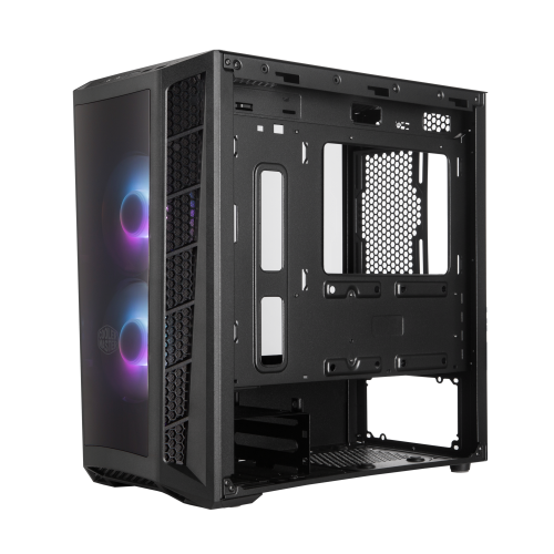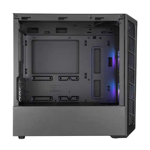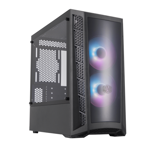 Cooler Master MasterBox MB320L ARGB. Factor de forma: Mini Tower, Tipo: PC, Color del producto: Negro. Ubicación de fuente de alimentación: Fondo, Factores de forma de la fuente de alimentación compatibles: ATX. Ventiladores frontales instalados: 2x 120 mm, Diámetro de ventiladores frontales soportados: 120,140 mm, Diámetro de ventiladores traseros soportados: 120 mm. Tamaños de disco duro soportados: 2.5,3.5″. Ancho: 217,5 mm, Profundidad: 435,5 mm, Altura: 410 mm