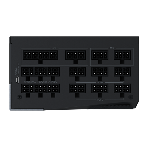 Gigabyte AORUS P1200W. Potencia total: 1200 W, Voltaje de entrada AC: 100 – 240 V, Frecuencia de entrada AC: 50/60 Hz. Alimentador de energía para tarjeta madre: 20+4 pin ATX, Longitud del cable de alimentación de la placa base: 61 cm, Longitud del cable de alimentación SATA: 150,650 mm. Utilizar con: PC, Factor de forma de fuente de alimentación (PSU): ATX, Certificación 80 PLUS: 80 PLUS Platinum. Color del producto: Negro, Tipo de enfriamiento: Activo, Diámetro de ventilador: 14 cm. Ancho: 150 mm, Profundidad: 86 mm, Altura: 160 mm