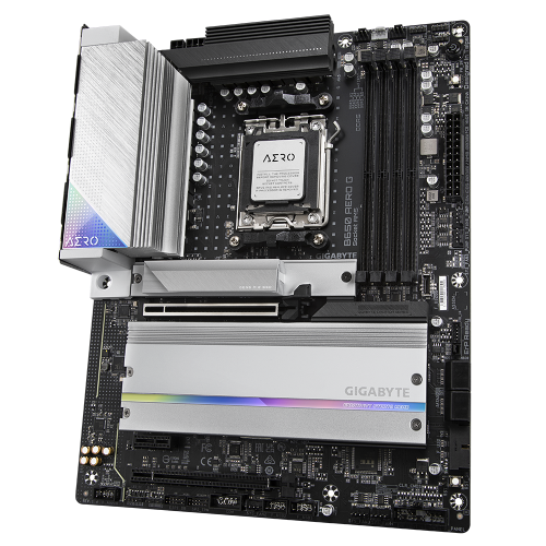 Gigabyte B650 AERO G. Fabricante de procesador: AMD, Socket de procesador: Zócalo AM5, Procesador compatible: AMD Ryzen™ 5, AMD Ryzen 7 7th Gen, AMD Ryzen 9 7th Gen. tipos de memoria compatibles: DDR5-SDRAM, Memoria interna máxima: 192 GB, Tipo de ranuras de memoria: DIMM. Interfaces de disco de almacenamiento soportados: M.2, SATA III, Tipos de unidades de almacenamiento admitidas: HDD & SSD, Niveles RAID: 0, 1, 10. Máxima resolución: 4096 x 2160 Pixeles. Conector USB: USB tipo A, USB Tipo C