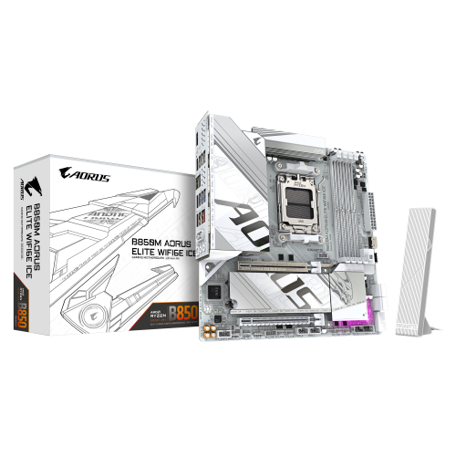 GIGABYTE B850M AORUS ELITE WIFI6E ICE Placa Base – Procesadores AMD Ryzen Serie 9000, 12+2+1 fases VRM digitales, hasta 8200MHz DDR5 (OC), 1xPCIe 5.0 + 1xPCIe 4.0 M.2, LAN 2.5, WIFI 7, USB 3.2 Gen 2