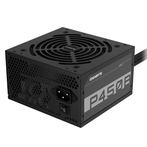 Gigabyte P450B. Potencia total: 450 W, Voltaje de entrada AC: 100 – 240 V, Frecuencia de entrada AC: 50/60 Hz. Alimentador de energía para tarjeta madre: 20+4 pin ATX, Longitud del cable de alimentación de la placa base: 55 cm, Longitud del cable de alimentación SATA: 500 mm. Utilizar con: PC, Factor de forma de fuente de alimentación (PSU): ATX, Certificación 80 PLUS: 80 PLUS Bronze. Color del producto: Negro, Tipo de enfriamiento: Activo, Diámetro de ventilador: 12 cm. Ancho: 150 mm, Profundidad: 140 mm, Altura: 86 mm