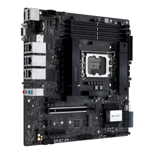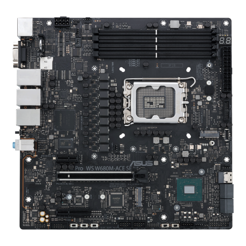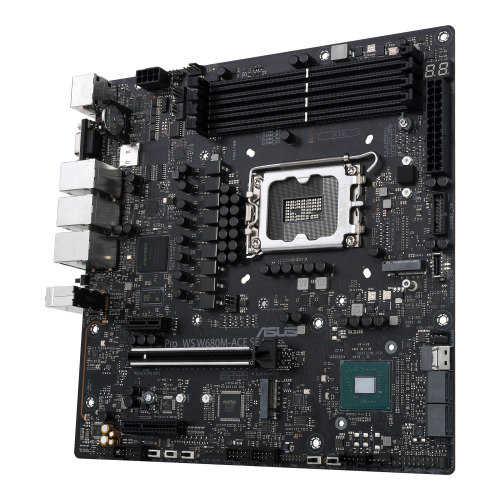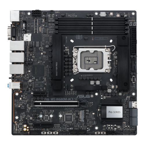 ASUS PRO WS W680M-ACE SE. Fabricante de procesador: Intel, Socket de procesador: LGA 1700, Procesador compatible: Intel® Core™ i3, Intel® Core™ i5, Intel® Core™ i7, Intel® Core™ i9. tipos de memoria compatibles: DDR5-SDRAM, Memoria interna máxima: 192 GB, Tipo de ranuras de memoria: DIMM. Interfaces de disco de almacenamiento soportados: M.2, NVMe, PCI Express 4.0, SATA III, SlimSAS, Tipos de unidades de almacenamiento admitidas: HDD & SSD, Niveles RAID: 0, 1, 5, 10. Tipo de interfaz ethernet: 2.5 Gigabit Ethernet, Gigabit Ethernet. Componente para: PC, Factor de forma: micro ATX, Familia del chipset: Intel