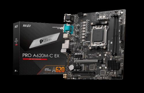 PLACA MSI PRO A620M-C EX,AMD,AM5,A620,2DDR5,128GB,VGA+DVI+HDMI+DP,GBLAN,4SATA6.0+2XM.2,4USB3.2+1USB3.2 TYPE-C,MATX.