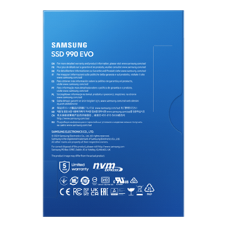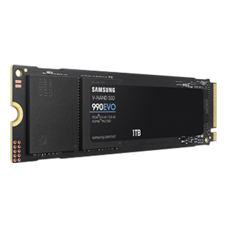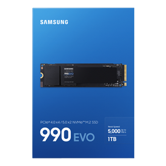 Samsung 990 EVO. SDD, capacidad: 1 TB, Factor de forma de disco SSD: M.2, Velocidad de lectura: 5000 MB/s, Velocidad de escritura: 4200 MB/s, Componente para: Universal
