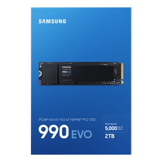 Samsung 990 EVO. SDD, capacidad: 2 TB, Factor de forma de disco SSD: M.2, Velocidad de lectura: 5000 MB/s, Velocidad de escritura: 4200 MB/s, Componente para: Universal