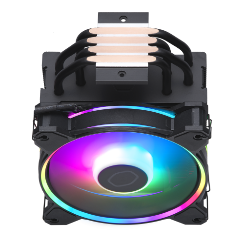 Cooler Master Hyper 212 Halo Black. Tipo: Refrigerador de aire, Velocidad de rotación (mín.): 650 RPM, Velocidad de rotación (máx.): 2050 RPM, Nivel de ruido (alta velocidad): 27 dB, Máximo flujo de aire: 51,88 cfm, Presión máxima de aire: 2,89 mmH2O, Tipo de soporte: Rodamiento tipo rifle. Ancho: 73 mm, Profundidad: 124 mm, Altura: 154 mm. Color del producto: Negro