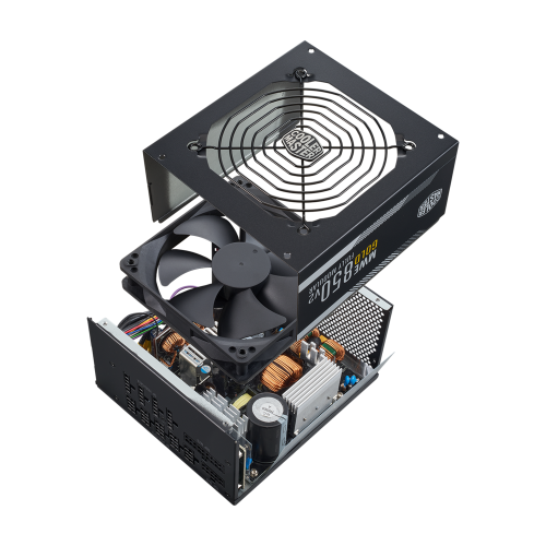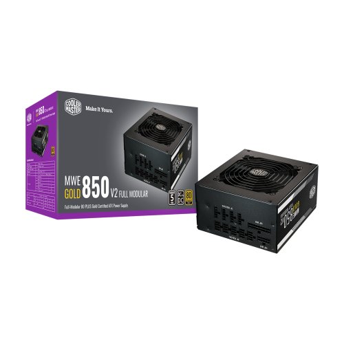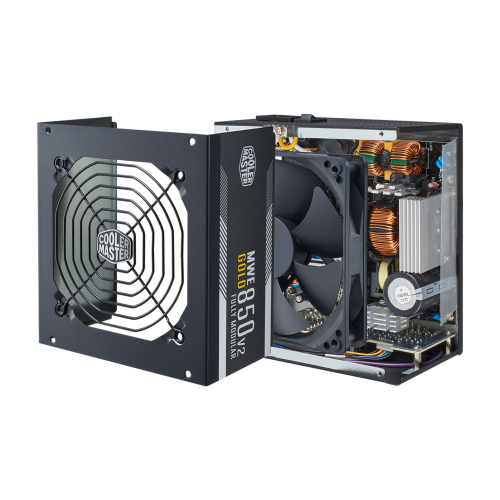 Cooler Master MWE Gold 850 V2 ATX 3.0 Ready. Potencia total: 850 W, Voltaje de entrada AC: 100 - 240 V, Frecuencia de entrada AC: 50/60 Hz. Alimentador de energía para tarjeta madre: 24-pin ATX, Longitud del cable de alimentación de la placa base: 61 cm, Longitud del cable de alimentación SATA: 500,620,740,860 mm. Utilizar con: PC/servidor, Factor de forma de fuente de alimentación (PSU): ATX, Certificación 80 PLUS: 80 PLUS Gold. Color del producto: Negro, Tipo de enfriamiento: Activo, Diámetro de ventilador: 12 cm. Ancho: 150 mm, Profundidad: 160 mm, Altura: 86 mm