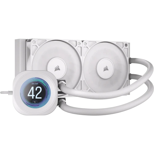 Corsair Nautilus 240 RS LCD. Tipo: Sistema de refrigeración líquida todo en uno, Diámetro de ventilador: 12 cm, Velocidad de rotación (mín.): 420 RPM, Velocidad de rotación (máx.): 2100 RPM, Presión de aire mínima: 0,2 mmH2O, Presión máxima de aire: 4,15 mmH2O. Ancho: 125 mm, Profundidad: 275 mm, Altura: 125 mm. Color del producto: Blanco