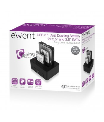Ewent EW7014. Tipo de almacenamiento: Unidad de disco duro, SSD, Interfaz de unidad de almacenamiento: Serial ATA III, Tamaños de almacenamiento en disco soportados: 2.5,3.5". Color del producto: Negro, Material: ABS sintéticos. Ancho: 149 mm, Profundidad: 117 mm, Altura: 61 mm. Ancho del paquete: 205 mm, Profundidad del paquete: 75 mm, Altura del paquete: 167 mm