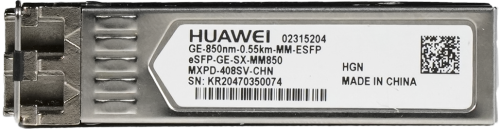 HUAWEI eKit eSFP-GE-SX-MM850. Tipo de transceptor SFP: Fibra óptica, Rango máximo de transferencia de datos: 1000 Mbit/s, Tipo de interfaz: SFP. Color del producto: Metálico, Material de la carcasa: Metal, Factor de forma: SFP+. Cantidad por paquete: 1 pieza(s)