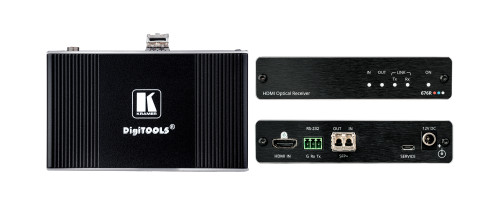 676R es un receptor de fibra HDMI de alto rendimiento para una extensión de ultra alcance de señales HDMI 4K a 60Hz (4: 4: 4). El 676R recibe la señal óptica transmitida de un transmisor compatible y la convierte en señales HDMI y RS−232. El 676R incluye un transceptor SFP + multimodo, pero se puede utilizar con cualquier transceptor SFP + certificado de Kramer, como un transceptor SFP + monomodo.