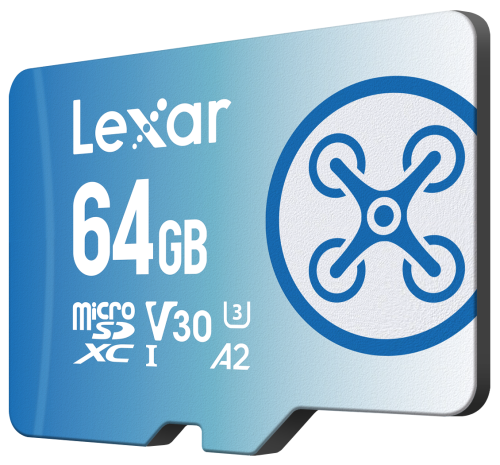 Lexar FLY microSDXC UHS-I card. Capacidad: 64 GB, Tipo de tarjeta flash: MicroSDXC, Clase de memoria flash: Clase 10, Tipo de memoria interna: UHS-I, Velocidad de lectura: 160 MB/s, Velocidad de escritura: 60 MB/s, Clase de velocidad UHS: Class 3 (U3), Clase de velocidad de vídeo: V30. Color del producto: Azul