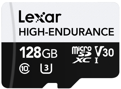 Lexar High-Endurance. Capacidad: 128 GB, Tipo de tarjeta flash: MicroSDXC, Clase de memoria flash: Clase 10, Tipo de memoria interna: UHS-I, Clase de velocidad UHS: Class 3 (U3), Clase de velocidad de vídeo: V30