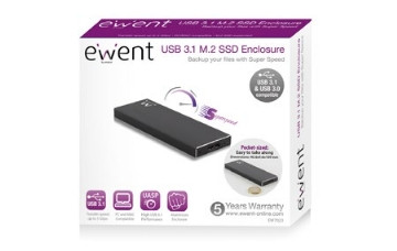 Ewent EW7023. Tipo de producto: Caja externa para unidad de estado sólido (SSD). Número de unidades de almacenamiento compatibles: 1, Interfaces de disco de almacenamiento soportados: M.2. Velocidad de transferencia de datos: 5 Gbit/s. Color del producto: Negro