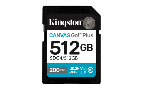 Kingston Technology 512GB SDXC Canvas Go Plus Gen4 200MB/s C10 UHS-I U3 V30