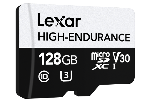 Lexar High-Endurance. Capacidad: 128 GB, Tipo de tarjeta flash: MicroSDXC, Clase de memoria flash: Clase 10, Tipo de memoria interna: UHS-I, Clase de velocidad UHS: Class 3 (U3), Clase de velocidad de vídeo: V30
