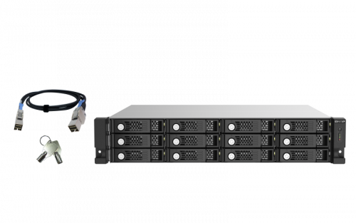 QNAP TL-R1220Sep-RP. Tipo de producto: Carcasa de disco duro/SSD. Número de unidades de almacenamiento compatibles: 12, Tamaño de la unidad de almacenamiento: 2.5/3.5″, Interfaces de disco de almacenamiento soportados: SAS-3, Serial ATA III, Hot-swap. Montaje en rack, Capacidad del rack: 2U, Color del producto: Negro, Gris