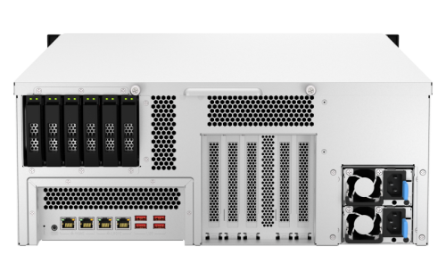 QNAP TS-H3087XU-RP. Tipos de unidades de almacenamiento admitidas: HDD & SSD, Interfaz de unidad de almacenamiento: SATA, Interfaces de disco de almacenamiento soportados: SATA. Familia de procesador: Intel Xeon E, Fabricante de procesador: Intel, Modelo del procesador: E-2378. Memoria interna: 64 GB, Tipo de memoria interna: DDR4, RAM máximo soportado: 128 GB. Ethernet LAN, velocidad de transferencia de datos: 100,1000,2500 Mbit/s, Tecnología de cableado ethernet de cobre: 10GBASE-T, Protocolos de red compatibles: IPv4, IPv6. Tipo de chasis: Bastidor (4U), Tipo de enfriamiento: Activo, Color del producto: Negro, Blanco