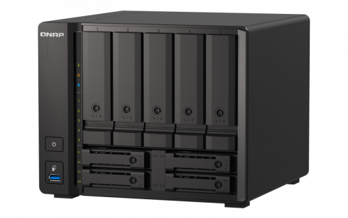 QNAP TS-H973AX-32G. Tipos de unidades de almacenamiento admitidas: HDD & SSD, Interfaz de unidad de almacenamiento: SATA, Tamaños de almacenamiento en disco soportados: 2.5,3.5″. Familia de procesador: AMD Ryzen, Fabricante de procesador: AMD, Modelo del procesador: V1500B. Memoria interna: 32 GB, Tipo de memoria interna: DDR4, RAM máximo soportado: 32 GB. Ethernet LAN, velocidad de transferencia de datos: 100,1000,2500,5000,10000 Mbit/s, Tasa de datos LAN Ethernet compatible (máx.): 10000 Mbit/s, Tecnología de cableado ethernet de cobre: 10GBASE-T. Tipo de chasis: Tower, Color del producto: Negro, Número de ventiladores: 1 Ventilador(es)