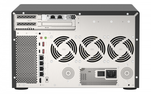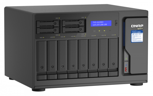 QNAP TVS-h1288X. Tipos de unidades de almacenamiento admitidas: HDD & SSD, Interfaz de unidad de almacenamiento: M.2, Serial ATA III, Tamaños de almacenamiento en disco soportados: 2.5,3.5,M.2. Familia de procesador: Intel® Xeon®, Fabricante de procesador: Intel, Frecuencia del procesador: 3,3 GHz. Memoria interna: 16 GB, Tipo de memoria interna: DDR4, RAM máximo soportado: 128 GB. Ethernet LAN, velocidad de transferencia de datos: 100,1000,2500,10000 Mbit/s. Tipo de chasis: Torre, Tipo de enfriamiento: Activo, Color del producto: Negro