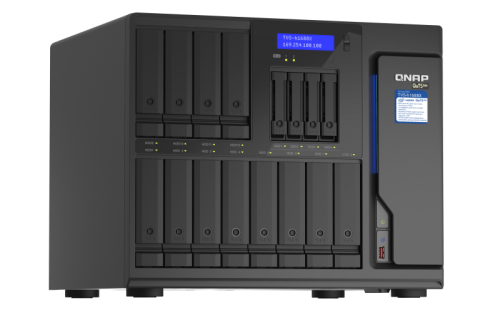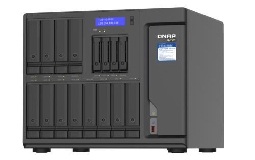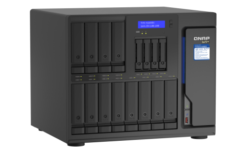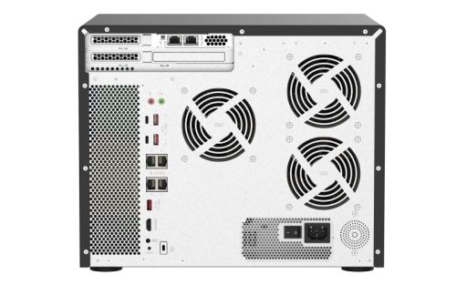 QNAP TVS-h1688X. Tipos de unidades de almacenamiento admitidas: HDD & SSD, Interfaz de unidad de almacenamiento: M.2, Serial ATA III, Tamaños de almacenamiento en disco soportados: 2.5,3.5,M.2. Familia de procesador: Intel® Xeon®, Fabricante de procesador: Intel, Frecuencia del procesador: 3,3 GHz. Memoria interna: 32 GB, Tipo de memoria interna: DDR4, RAM máximo soportado: 128 GB. Ethernet LAN, velocidad de transferencia de datos: 100,1000,2500,10000 Mbit/s. Tipo de chasis: Torre, Tipo de enfriamiento: Activo, Color del producto: Negro