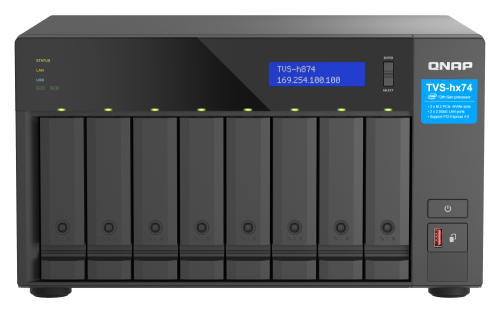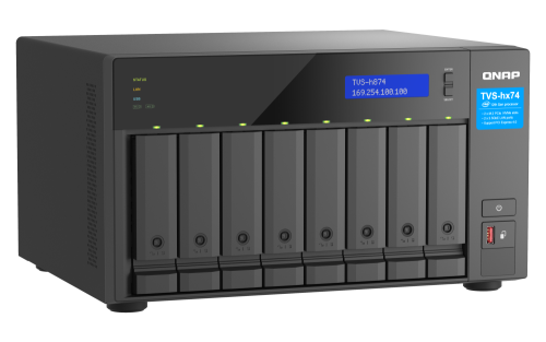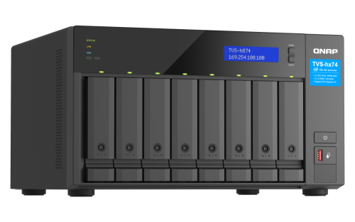 Almacenamiento muy fiable basado en ZFS con capacidad de ampliación PCIe Gen 4 para conectividad de 10/25 GbE, almacenamiento en caché para SSD M.2 NVMe y procesadores de varios subprocesos para aplicaciones de virtualizaciónCon un procesador Intel® Core™ i5 de seis núcleos compatible con el sistema operativo QuTS hero basado en ZFS, el TVS-h874 SMB NAS garantiza la integridad de los datos y admite la deduplicación de datos en línea a nivel de bloque y compresión, instantáneas casi ilimitadas, SnapSync en tiempo real y optimización de SSD. Ya se trate de servidores de archivos de misión crítica, servidores de virtualización, edición de vídeo colaborativa o eficaces aplicaciones de copia de seguridad y recuperación de datos, el TVS-h874 ofrece una solución NAS ideal. El TVS-h874 de alto rendimiento proporciona capacidad de ampliación PCIe Gen 4 (hasta el doble de la velocidad de transmisión de Gen 3), almacenamiento en caché para SSD M.2 NVMe y conectividad de 2,5 GbE para entornos de red de virtualización de alta velocidad.Procesador Intel® Core™ de alto rendimiento con potencia de hasta 4,4 GHzEl TVS-h874 adopta un procesador Intel® Core™ i5 de seis núcleos con Intel® UHD Graphics 770 para aumentar las capacidades multitarea, lo que ofrece a las Pymes una solución NAS segura, fiable y de alto rendimiento.Aumente el rendimiento del NAS con los SSD M.2 o TPUEl TVS-h874 cuenta con dos ranuras M.2 PCIe, lo que permite el almacenamiento en caché SSD o grupos de almacenamiento SSD para mejorar el rendimiento u otras aplicaciones.Instale los SSD M.2 NVMe para aceleración de cachéEl TVS-h874 admite el almacenamiento en caché SSD e incluye dos ranuras M.2 que admiten SSD M.2 PCIe NVMe con 2280 factores de forma (de venta por separado) para mejorar el rendimiento general del NAS.Acelere el reconocimiento de imágenes con IA con TPUAl utilizar Google Edge TPU para QNAP AI Core, (el motor equipado con IA para el reconocimiento de imágenes), el TVS-h874 puede realizar un reconocimiento de objetos y caras de alta velocidad. Google Edge TPU permite que QuMagie procese rápidamente miles de fotos con reconocimiento y clasificación de imágenes de IA de alta velocidad, y QVR Face para analizar vídeos en tiempo real para reconocimiento facial instantáneo.Cree un entorno de red de 2,5 GbE de alta velocidadTVS-h874 tiene dos puertos de 2,5 GbE. QNAP ofrece completas y asequibles soluciones de almacenamiento que proporcionan una amplia variedad de posibilidades de conectividad. Mejore de forma rápida y sencilla su lugar de trabajo o su red doméstica para gestionar aplicaciones que requieran un gran ancho de banda.Un NAS rápido de 2,5 GbE/10 GbEUn NAS de QNAP incluye uno o varios puertos de 2,5 GbE/10 GbE y el Enlace troncal de puertos le permite combinar múltiples puertos para un mayor potencial del ancho de banda.Actualice ordenadores y servidoresLos ordenadores portátiles y de sobremesa se pueden instalar con tarjetas de red de QNAP basadas en PCIe que admiten 10G/5G/2,5G/1G/100M Multi-Gig.Añada un puerto 5GbE a sus portátilesLos portátiles y ordenadores con una actualización limitada pueden usar un adaptador portátil de USB 3.2 Gen 1 a 5GbE de QNAP que le permite conectar con redes 5G/2,5G/1G/100M a través de USB.Un switch que admite más de 2,5GbE/10GbELos switches 10GbE/NBASE-T de QNAP admiten velocidades de 10G/5G/2,5G/1G/100M y permiten conectar múltiples estaciones de trabajo y dispositivos para garantizar una colaboración de alta velocidad en entornos con muchos dispositivos.Abundantes capacidades de E/S con expansión PCIeEl TVS-h874 incluye dos ranuras PCIe que permite la instalación de varias tarjetas de expansión para aumentar el potencial de las aplicaciones.Experiencia visual definitiva con salida Full HD HDMI y transcodificación de vídeo en tiempo realSalida HDMIEl TVS-h874 cuenta con una salida HDMI compatible con Full HD, lo que ofrece grandes ventajas para aplicaciones como la producción/edición de vídeo o el diseño industrial que requiere una alta resolución y almacenamiento, transferencia y visualización mutimedia intensivos.Disfrute de contenido multimedia NAS o máquinas virtuales en un TVAl conectar el TVS-h874 a una pantalla HDMI, puede ver directamente contenido multimedia guardado en el NAS, utilizar máquinas virtuales desde Virtualization Station o disfrutar del contenido multimedia con el HD Player o reproductores de terceros.Más información: HybridDesk StationTranscodificación y visualización en tiempo realEl TVS-h874 cuenta con Intel® UHD Graphics que admite la decodificación de hardware y la transcodificación en tiempo real* para convertir vídeos a formatos de archivo universales que se pueden reproducir perfectamente en varios dispositivos.Identificación de imágenes más rápida con el motor de IA Intel® OpenVINO™ integrado.Gracias a los recursos informáticos de IA del Intel® OpenVINO™, el TVS-h874 acelera el rendimiento del reconocimiento de imágenes mediante IA sin tener ningún impacto en otras aplicaciones o servicios. El QNAP AI Core funciona principalmente con la aplicación QuMagie.Gestion des photos dans QuMagieSolution de gestion des photos simple d’utilisation qui intègre la reconnaissance d’image IA et le classement intelligent pour votre collection.El sistema operativo QuTS hero, basado en ZFS, mejora el rendimiento y la integridad de los datos del NASQuTS hero combina QTS basado en aplicaciones con el sistema de archivos ZFS de 128 bits para ofrecer una flexible administración del almacenamiento, una completa protección de los datos y un rendimiento optimizado para responder a la complejidad y las necesidades de rendimiento de los modernos departamentos de TI. Desde la administración del almacenamiento, pasando por la virtualización, hasta los flujos de trabajo multimedia colaborativos, QuTS hero optimiza las tareas críticas de su empresa.La integridad de los datos es cla