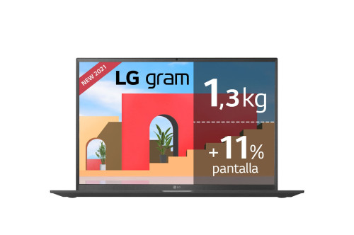 Ultraligero, ahora con más pantallaEl nuevo LG gram de 17 pulgadas ha evolucionado para aumentar tu productividad, incorporando a una pantalla profesional de 16:10 y unos procesadores súper potentes. Todo ello sin comprometer su peso ultraligero, para que puedas trabajar aún mejor en cualquier momento y en cualquier lugar.Alta resolución WQXGA (2560×1600)La pantalla WQXGA (2560×1600) proporciona colores claros y vívidos, con el doble de resolución que una pantalla Full HD. Por lo tanto, puedes realizar tareas de manera eficiente, como escribir, retocar o incluso programar.Diseño ultracompacto que aumenta la productividadEl nuevo LG gram 17Z95P cuenta con un diseño ultra compacto, con marcos más finos y pantalla de 17» dentro del cuerpo de un 15,6». Además, en su mejora del diseño, incorpora una bisagra invisible que lo convierte en un portátil más elegante y funcional.Nuevos procesadores Intel de 11 Generación Tiger LakeAl adquirir un certificado de la plataforma Intel Evo que son los procesadores Intel Core 11 Gen con gráficos Intel Iris X, LG gram ofrece un rendimiento más rápido para que la creación de contenido, la productividad laboral, los juegos y el streaming sean más fluidos.Máxima autonomía con hasta 15 horas de bateríaLG gram de 17 pulgadas cuenta con una batería de 80Wh de gran capacidad para que, con una sola carga, dure hasta 15 horas. Por lo tanto, su rendimiento es perfecto en cualquier lugar.Carga, transfiere y visualiza a la vezThunderbolt 4 te permite disfrutar de una conexión de pantalla de hasta 5K en un único puerto que te ofrece estabilidad, escalabilidad y seguridad. Además, el 17Z95P aumenta la productividad al ofrecer carga de dispositivos externos, soporte de interfaz de próxima generación y compatibilidad con USB4.
