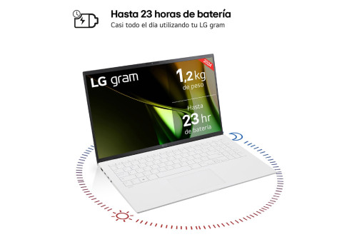 Lg gram de 15 pulgadas laptop. Ultraligero, con tan solo 1,2kg de peso, nueva batería de hasta 23 horas de autonomía* y un grosor de 16,9mm. Windows 11 Home. Pantalla IPS (1920×1080) (WQXGA) con tratamiento antirreflejos de 39,6cm (15″) en formato 16:9, con un amplio rango de color DCI-P3 99%.Chasis de aluminio de gran resistencia superando 7 pruebas del estándar militar STD-MIL-810H.Procesador Intel® Core™ Ultra 7, con memoria RAM ultrarrápida LPDDR5x de 16GB integrada en placa y disco duro SSD de 512GB NVMe de 4ª Generación con doble ranura ampliable. Gráfica Intel® Arc™ para trabajar con contenido 4K UHD con la máxima fluidez .Alta conectividad con 6 puertos (2 x USB 3.2, USB Tipo C con Thunderbolt 4 integrado para carga ultrarrápida, USB 3.2 Tipo C compatible con DisplayPort1.4, HDMI 2.1.)