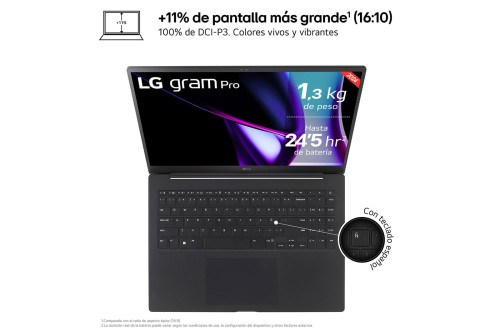 Ultraligero, con tan solo 1,2Kg de peso, batería de hasta 24,5 horas de autonomía* y ahora más fino con 13mmNueva pantalla OLED 3K (WQXGA+) (2880×1800) de 40,6 cm (16″) en formato 16:10, con tratamiento antirreflejos, tasa de refresco de hasta 120Hz y amplio rango de color DCI-P3 100%Nuevo chasis mejorado aún más fino de magnesio y nanocarbono de gran resistencia superando 7 pruebas del estándar militar STD-MIL-810H.Procesador Intel® Core™ Ultra 7, con memoria RAM ultrarrápida LPDDR5x de 32GB integrada en placa y disco duro SSD de 1T NVMe de 4ª Generación con doble ranura ampliable.