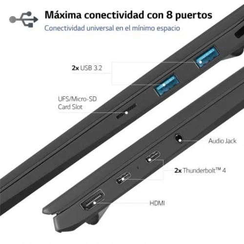 LG gram es un portátil ultra ligero y con la máxima autonomía*, ideal para llevártelo de viaje, teletrabajar o estudiar desde cualquier lugar y en cualquier momento, aprovechando al máximo su alta portabilidad y autonomía. Un portátil super ligero con un peso desde 998g. Cuenta con un diseño ultra compacto gracias a sus marcos más finos. Además, en su mejora del diseño, incorpora una bisagra invisible que lo convierte en un portátil más elegante y funcional. Cuenta con un nuevo Touch Pad más amplio y preciso, y un teclado con retroiluminación donde se ha mejorado el tamaño y el recorrido de las teclas convirtiéndolo en un portátil más cómodo para trabajar. Su chasis de magnesio y nano carbono ha pasado 7 pruebas de resistencia, recibiendo el estándar militar de durabilidad STDMIL- 810H, que le convierte en uno de los portátiles ultraligeros más resistentes del mercado. La nueva pantalla antireflejo de LG gram con ratio de aspecto 16:10, incorpora un novedoso panel IPS y resolución 2560 x 1600 pixeles (WQXGA), que proporciona una mejora del rango de color con una cobertura de hasta un 99% del espectro DCI-P3 y un ángulo de visión de 178º.LG gram ha sido certificado por Intel en la plataforma EvoTM al incorporar los nuevos Procesadores de 13a generación y la nueva Gráfica Iris Xe para trabajar con contenido 4K UHD con máxima fluidez.