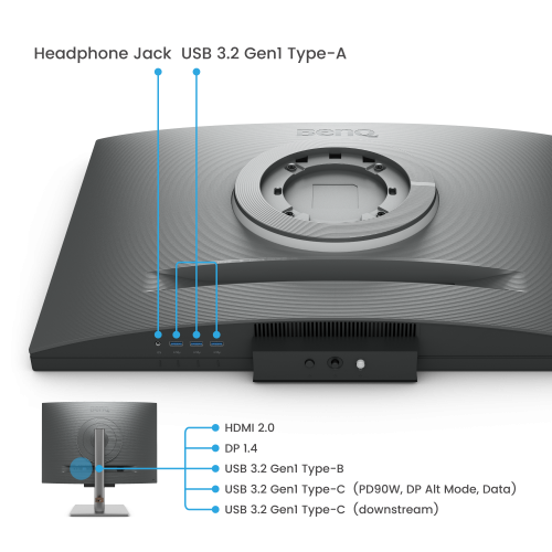 BenQ RD280U. Diagonal de la pantalla: 71,6 cm (28.2″), Resolución de la pantalla: 3840 x 2560 Pixeles, Tipo HD: 4K Ultra HD, Tiempo de respuesta: 5 ms, Relación de aspecto nativa: 3:2, Ángulo de visión, horizontal: 178°, Ángulo de visión, vertical: 178°. Altavoces incorporados. Conector USB incorporado, Versión de conector USB: 3.2 Gen 1 (3.1 Gen 1). montaje VESA, Ajustes de altura. Color del producto: Negro