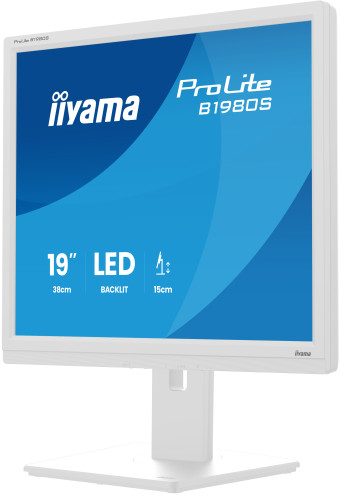 iiyama ProLite B1980S-W1. Diagonal de la pantalla: 48,3 cm (19″), Resolución de la pantalla: 1280 x 1024 Pixeles, Tipo HD: SVGA, Tecnología de visualización: LED, Tiempo de respuesta: 3 ms, Relación de aspecto nativa: 5:4, Ángulo de visión, horizontal: 170°, Ángulo de visión, vertical: 160°. Altavoces incorporados. montaje VESA, Ajustes de altura. Color del producto: Blanco