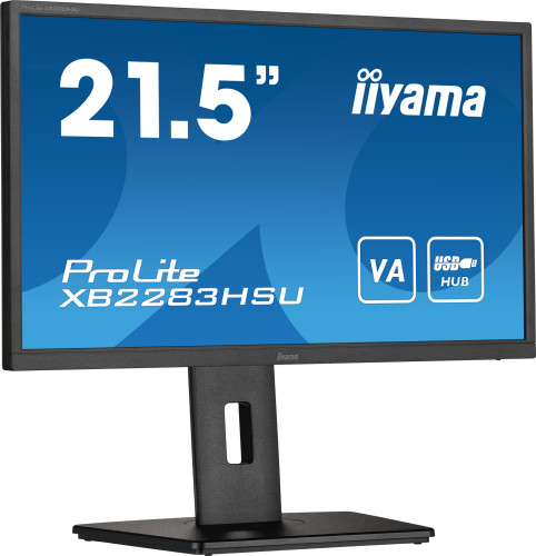 iiyama ProLite XB2283HSU-B1. Diagonal de la pantalla: 54,6 cm (21.5″), Resolución de la pantalla: 1920 x 1080 Pixeles, Tipo HD: Full HD, Tecnología de visualización: LED, Superficie de la pantalla: Mate, Tiempo de respuesta: 1 ms, Relación de aspecto nativa: 16:9, Ángulo de visión, horizontal: 178°, Ángulo de visión, vertical: 178°. Altavoces incorporados. Conector USB incorporado, Versión de conector USB: 2.0. montaje VESA, Ajustes de altura. Color del producto: Negro